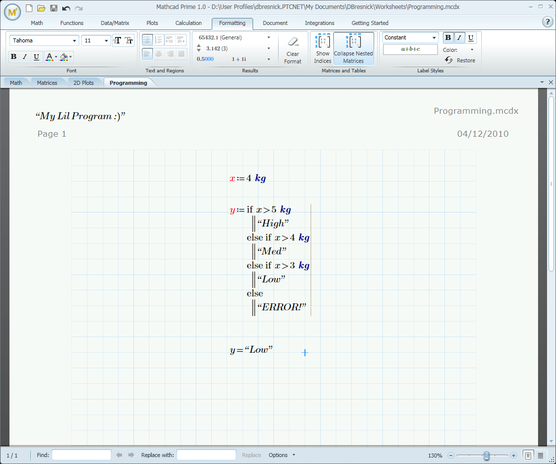 I’m particularly pleased to see that final image since it demonstrates that Mathcad Prime will support programming constructs. There were rumours a while ago that Prime would not be capable of either symbolics or programming which concerned me somewhat because I support users that require both.